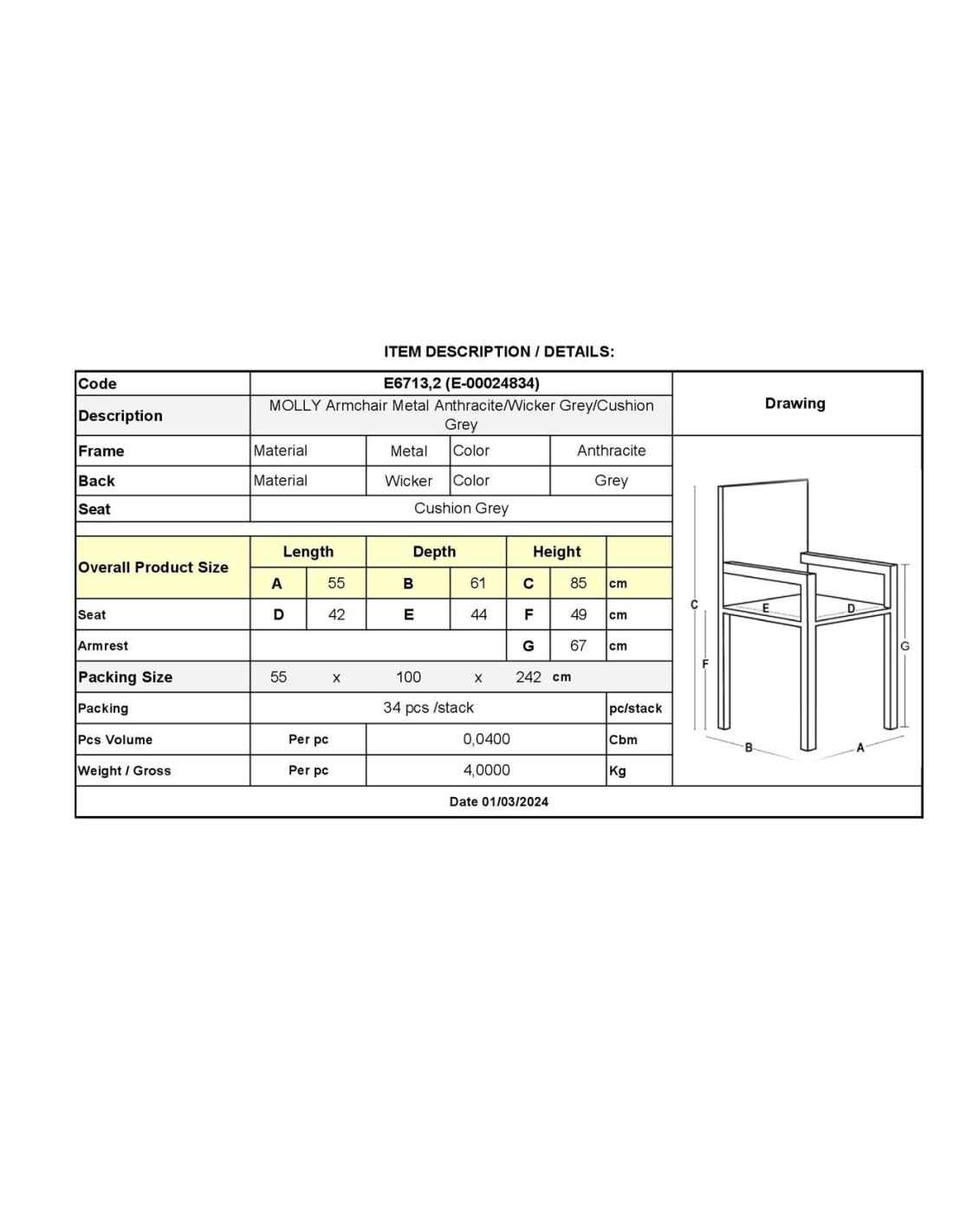 MOLLY Armchair Metal Anthracite-Wicker Grey-Cushion Grey
