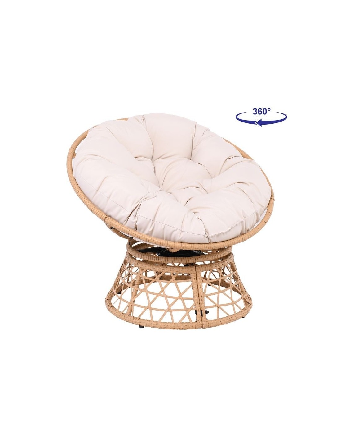 ROLLY Revolving Armchair-Wicker Natural, Cushion Ecru