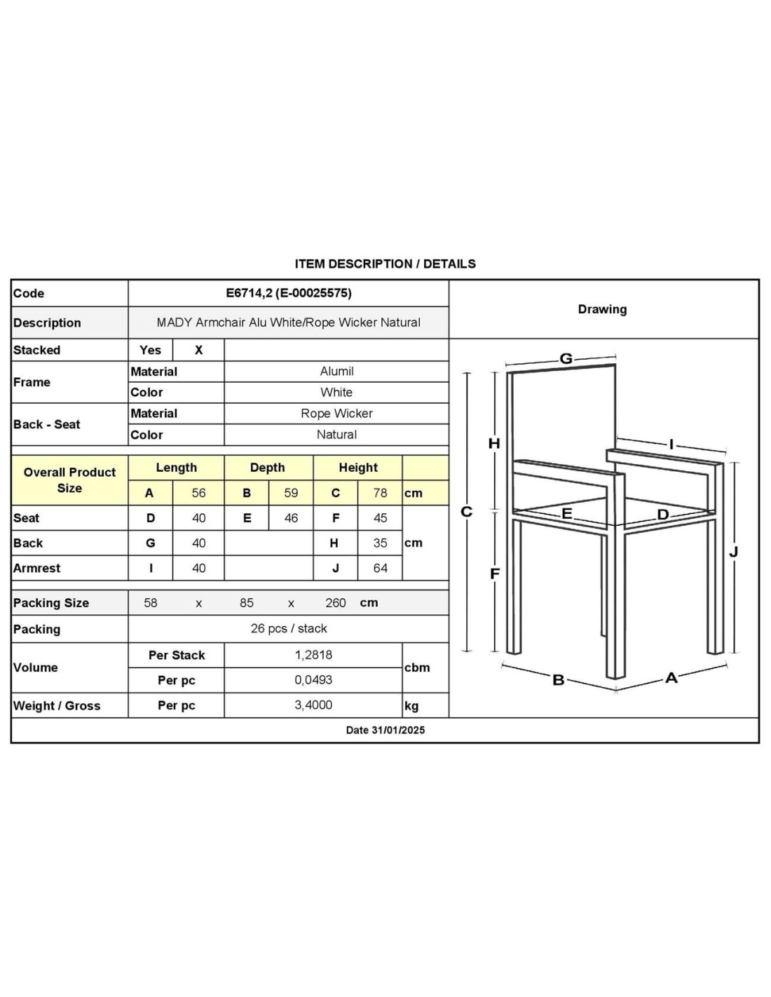 MADY Armchair Alu White-Rope Wicker Natural