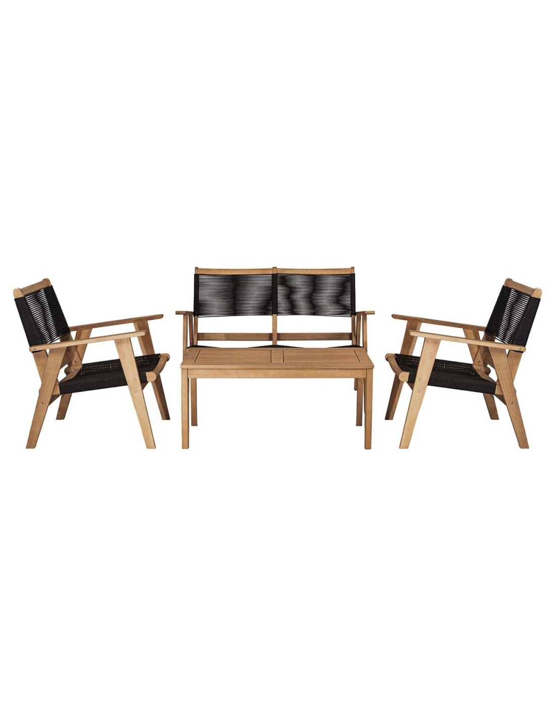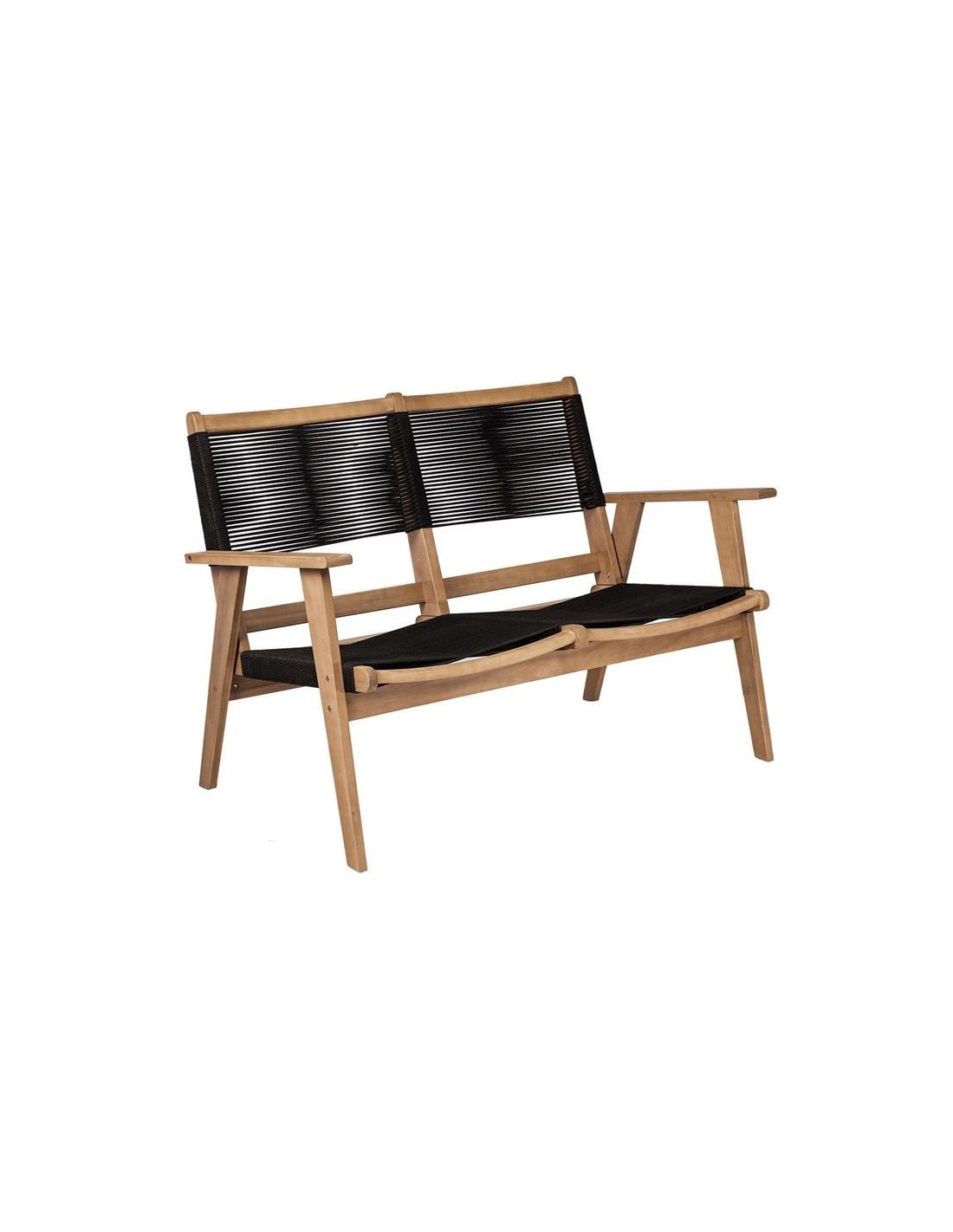COFFEE Living 2-Seat Bench Acacia Natural, Rope Wicker Black