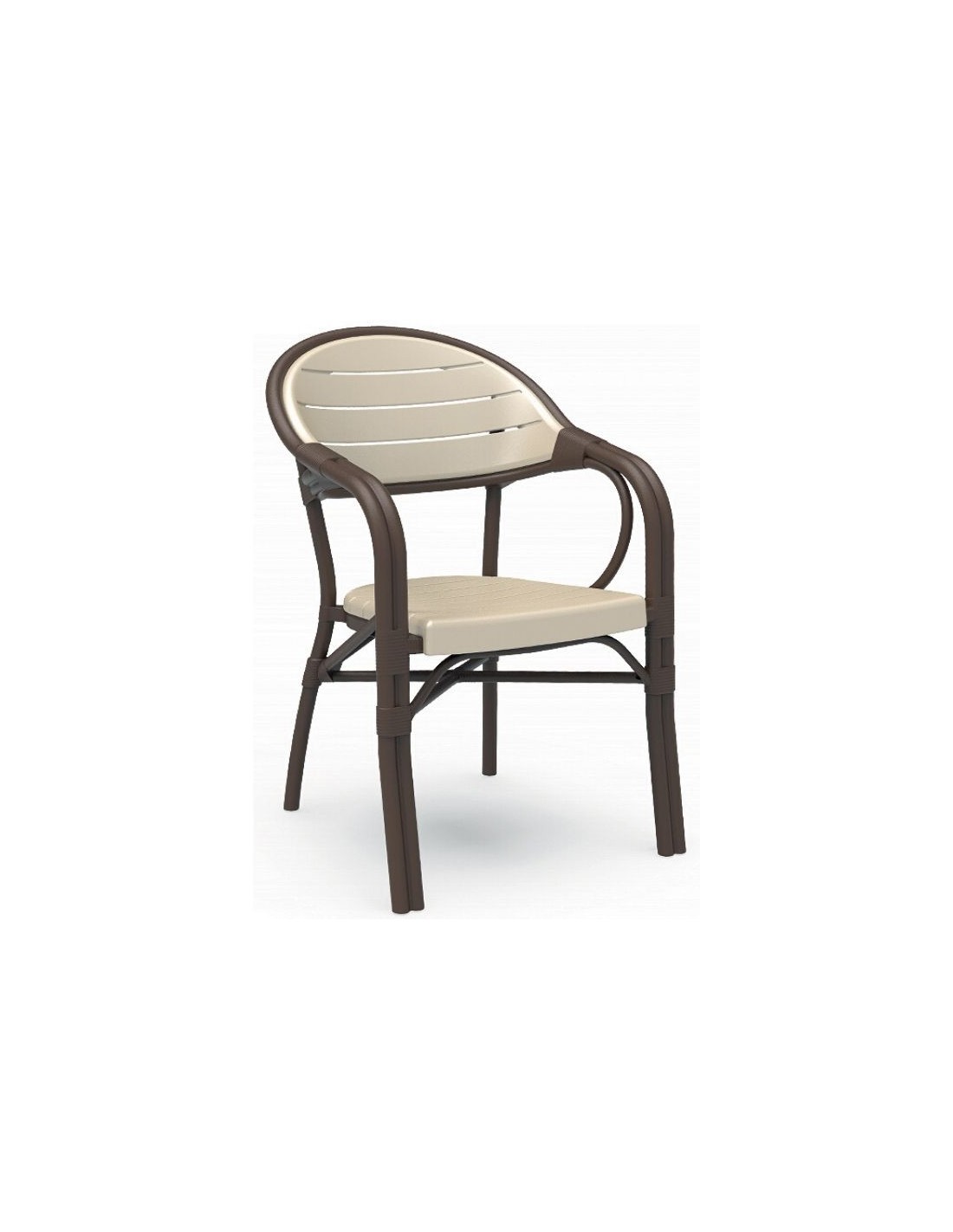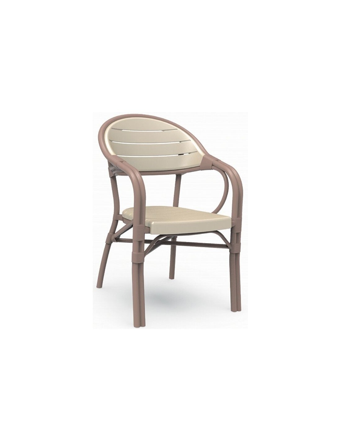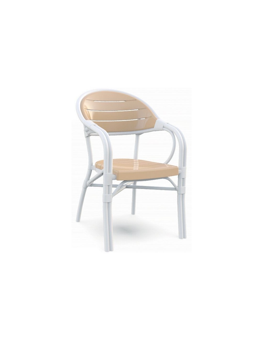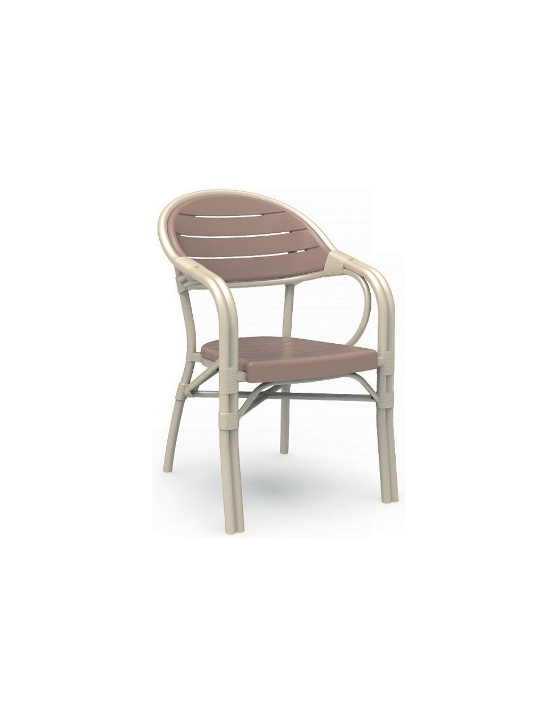Stackable armchair manufactured in polypropylene with gas injection molding.
