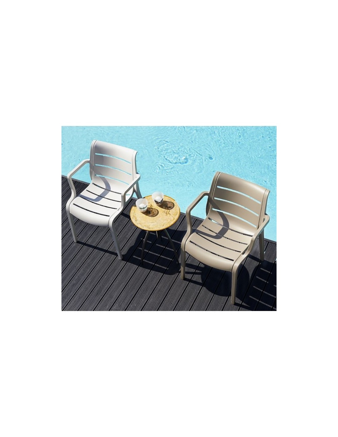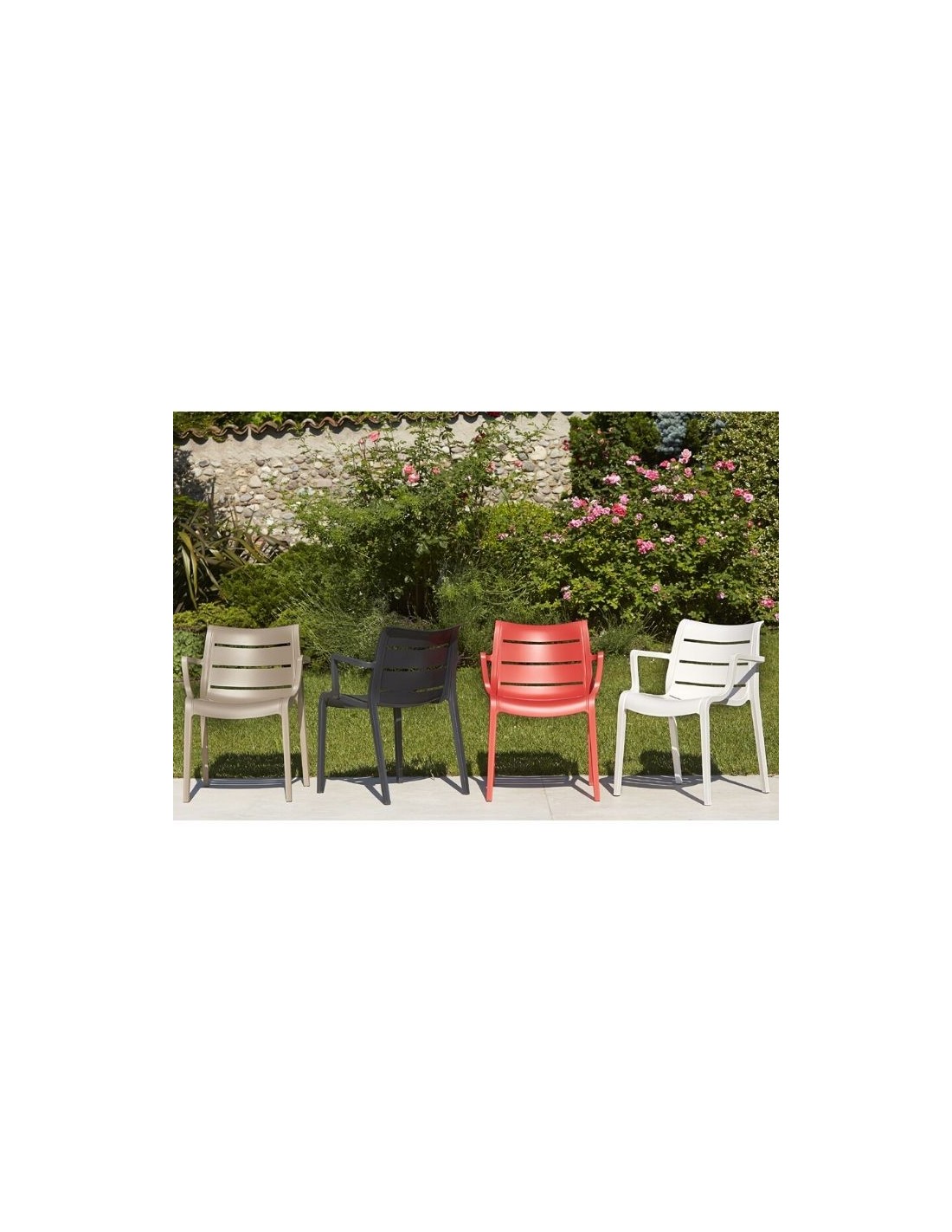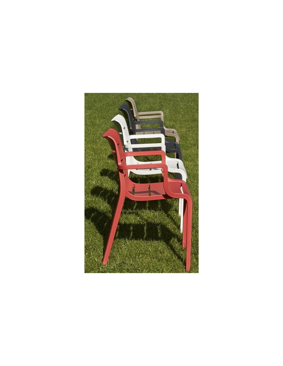 Stackable armchair, manufactured in technopolymer with fiber glass.