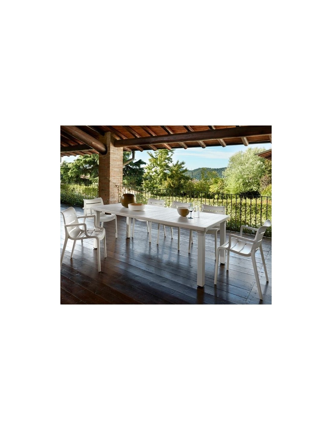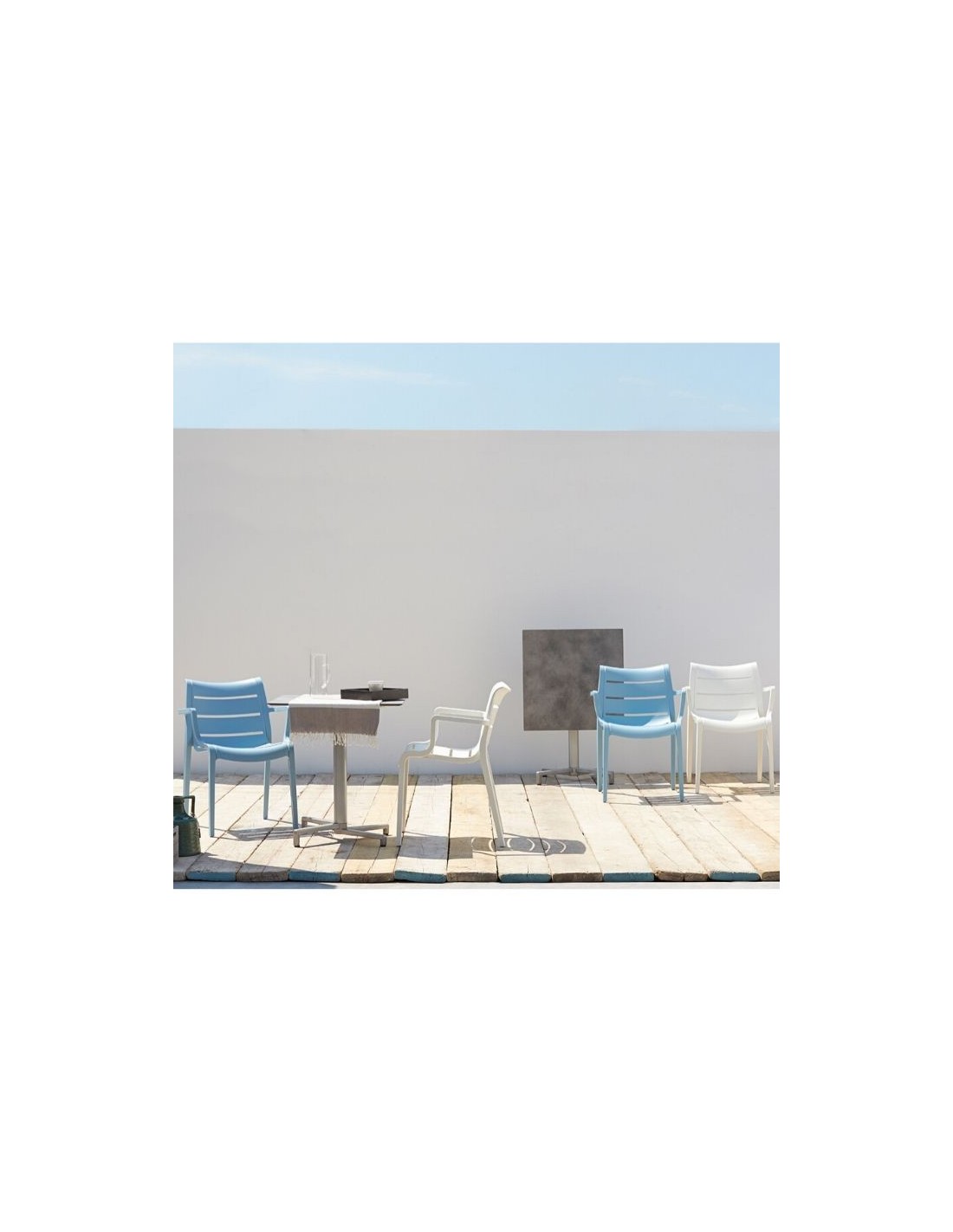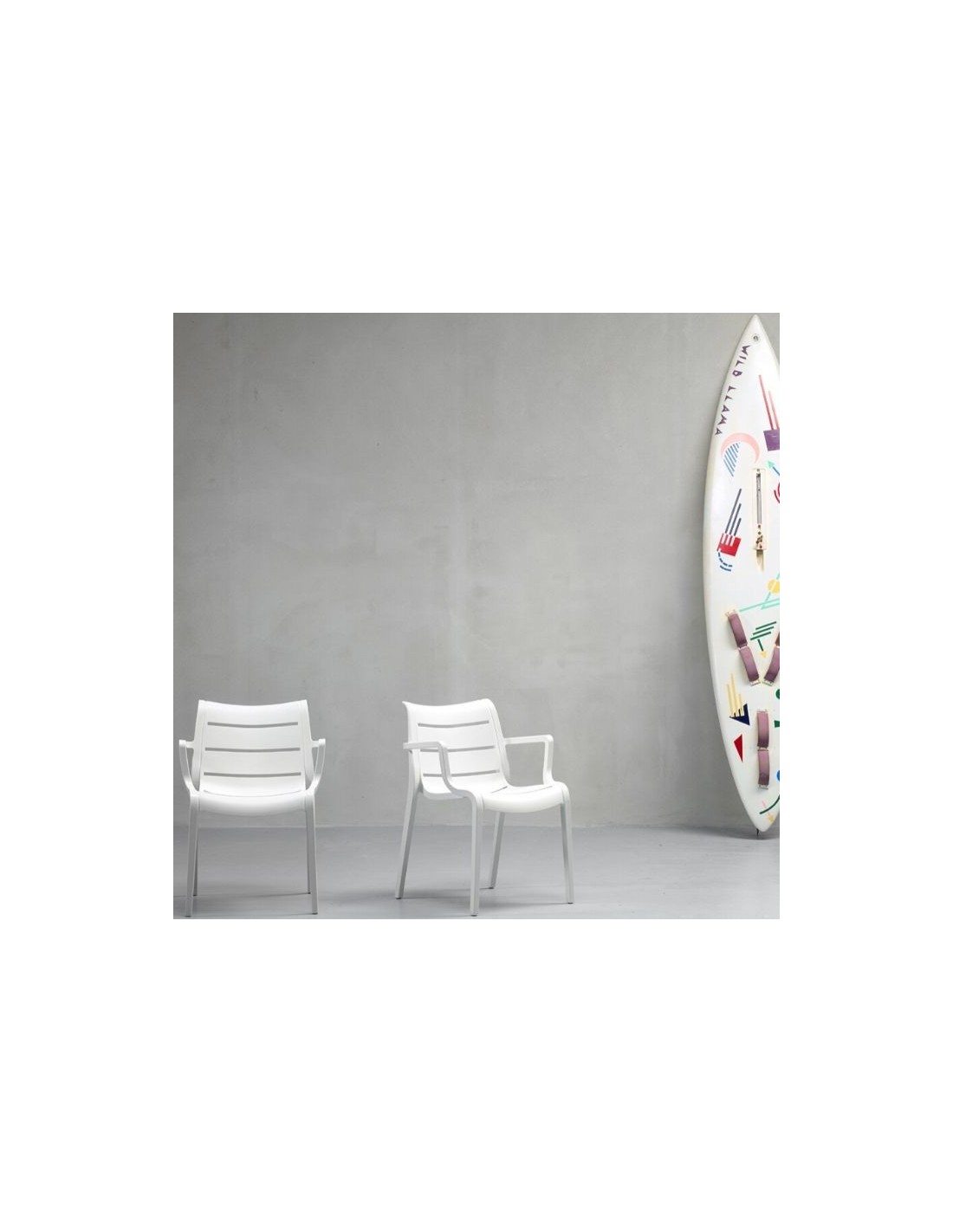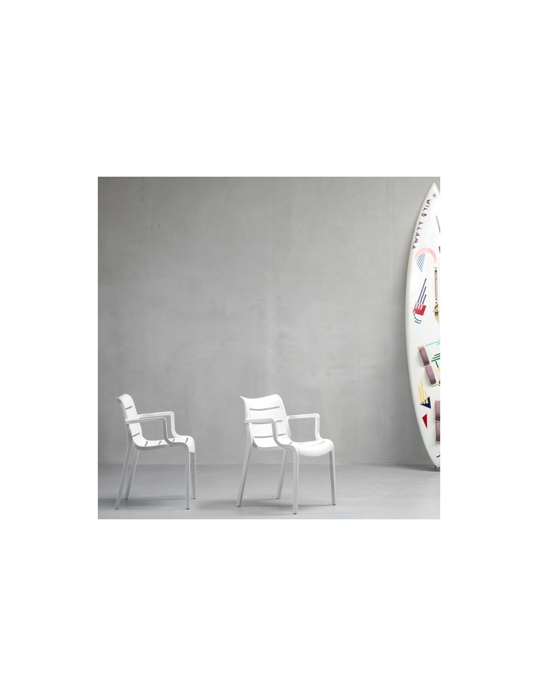 Stackable armchair, manufactured in technopolymer with fiber glass.