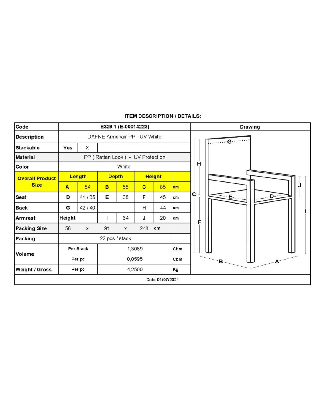 DAFNE Stackable Armchair PP-UV White (Rattan Look)
