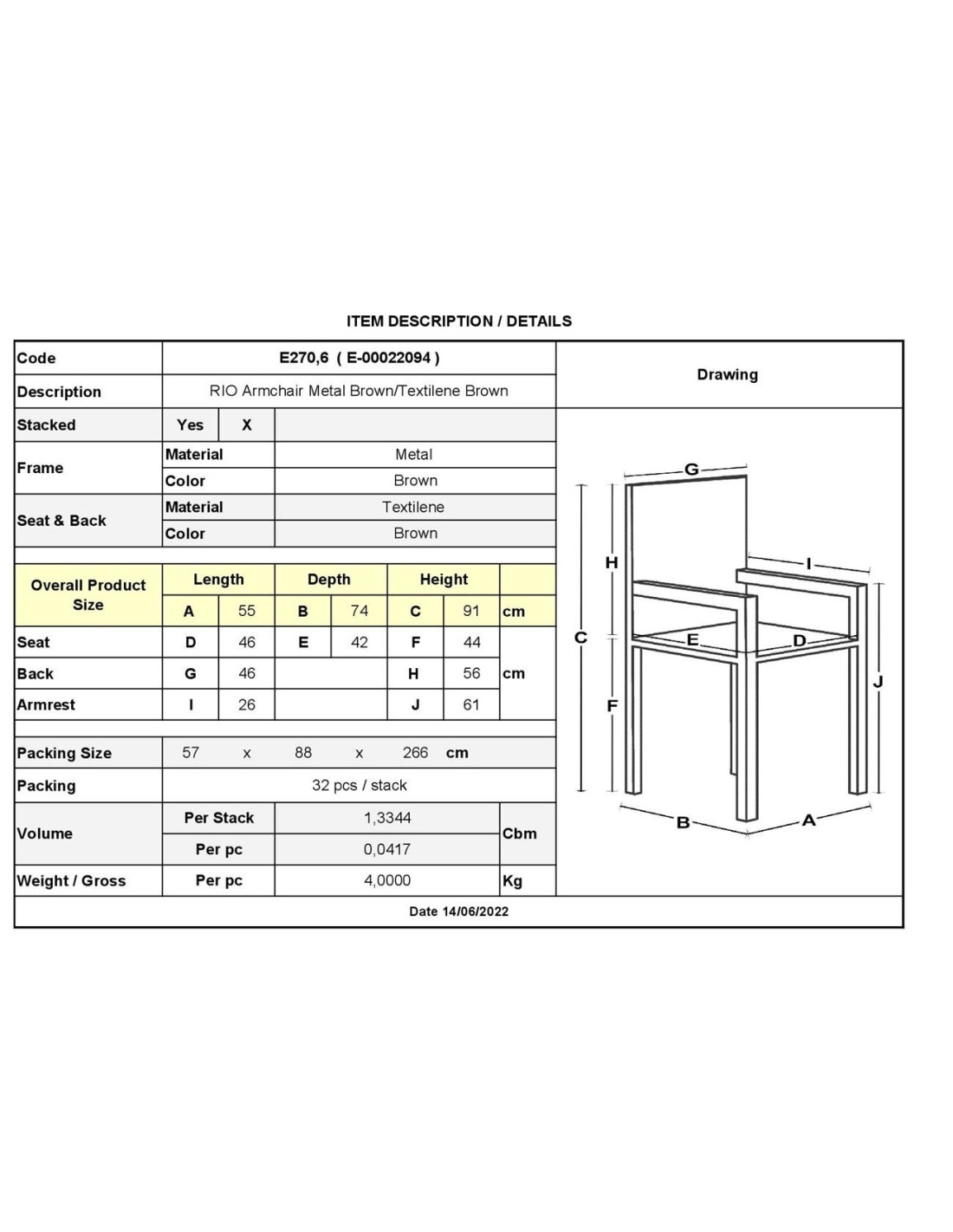 RIO Armchair Metal Brown-Textilene Brown (4,20 Kg)