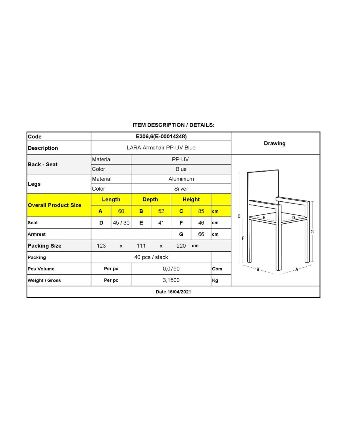 LARA Stackable Armchair Pro PP-UV Blue