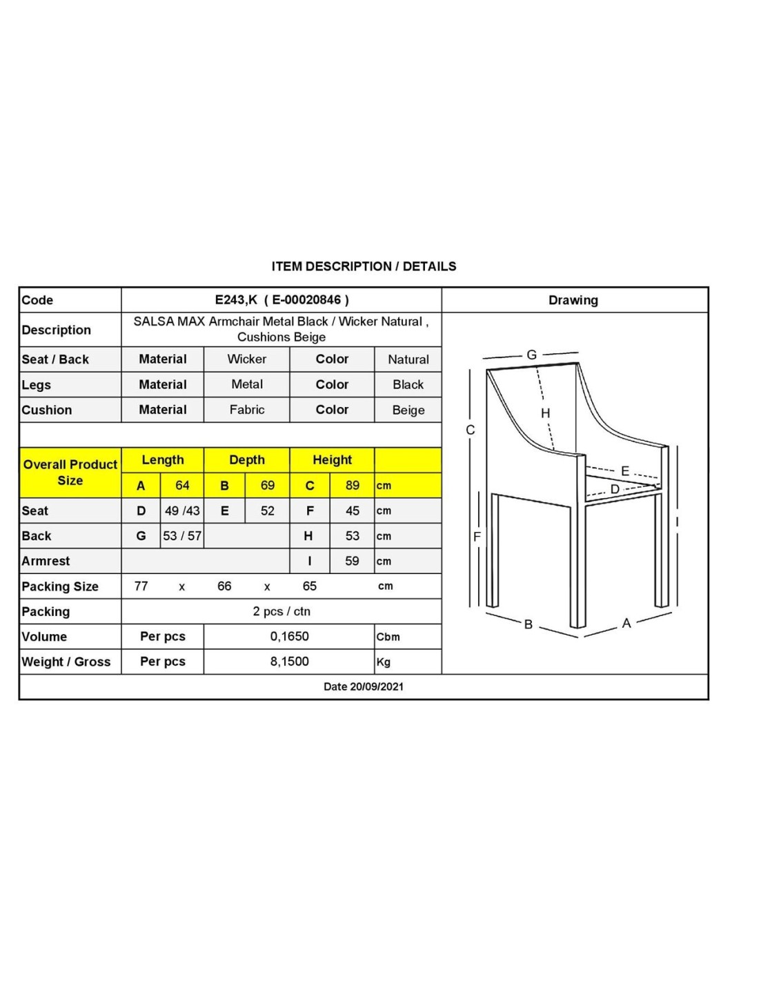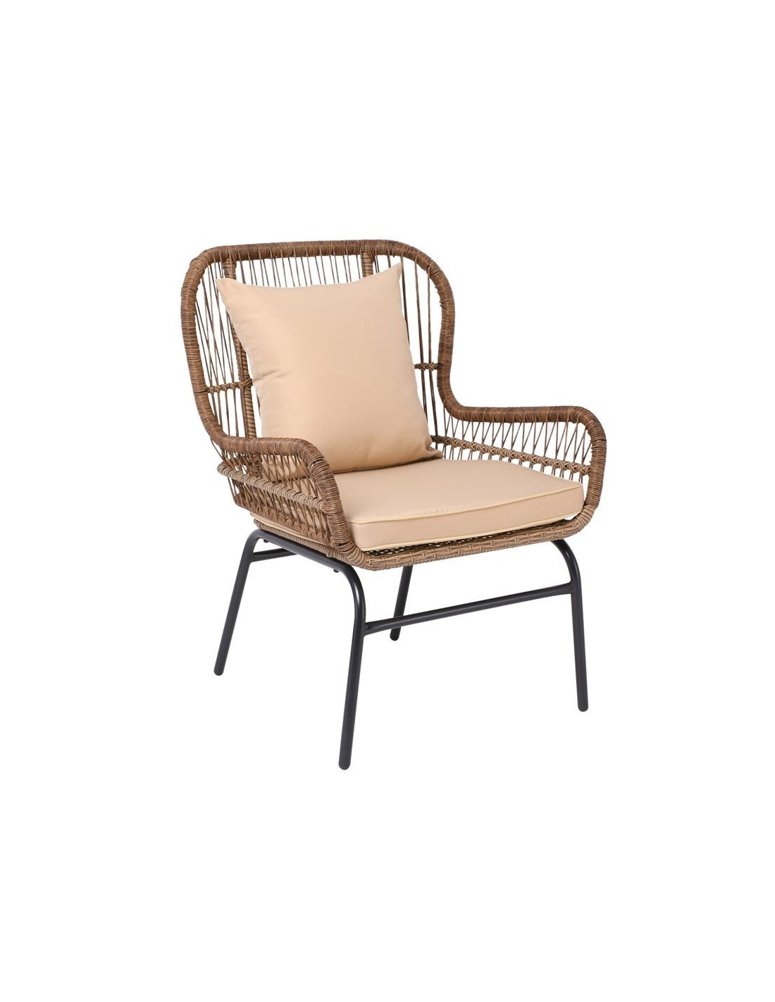 SALSA MAX Armchair Metal Black-Wicker Natural, Cushions Beige