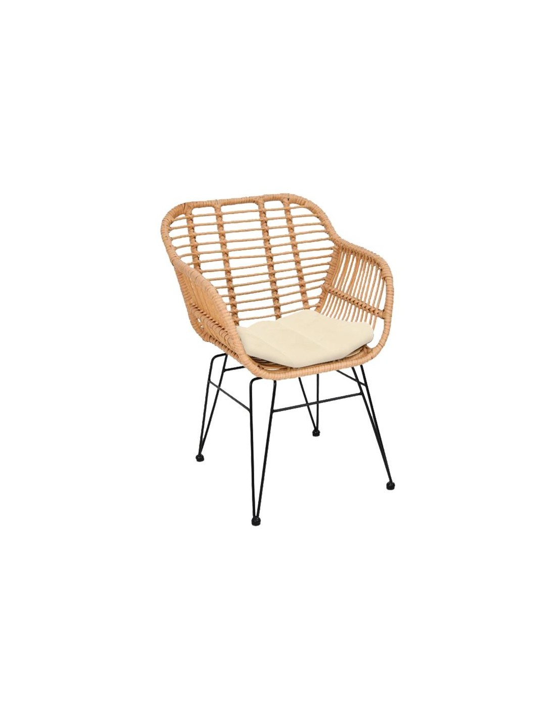 SALSA-W Armchair Metal Black-Wicker Natural, Cushion Ecru