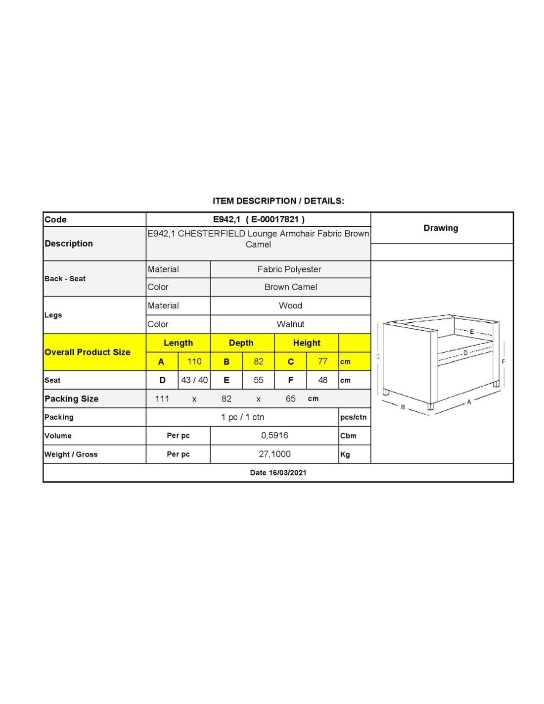 CHESTERFIELD York Armchair Brown Camel Fabric