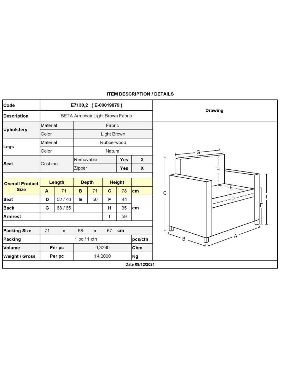 BETA Armchair Light Brown Fabric