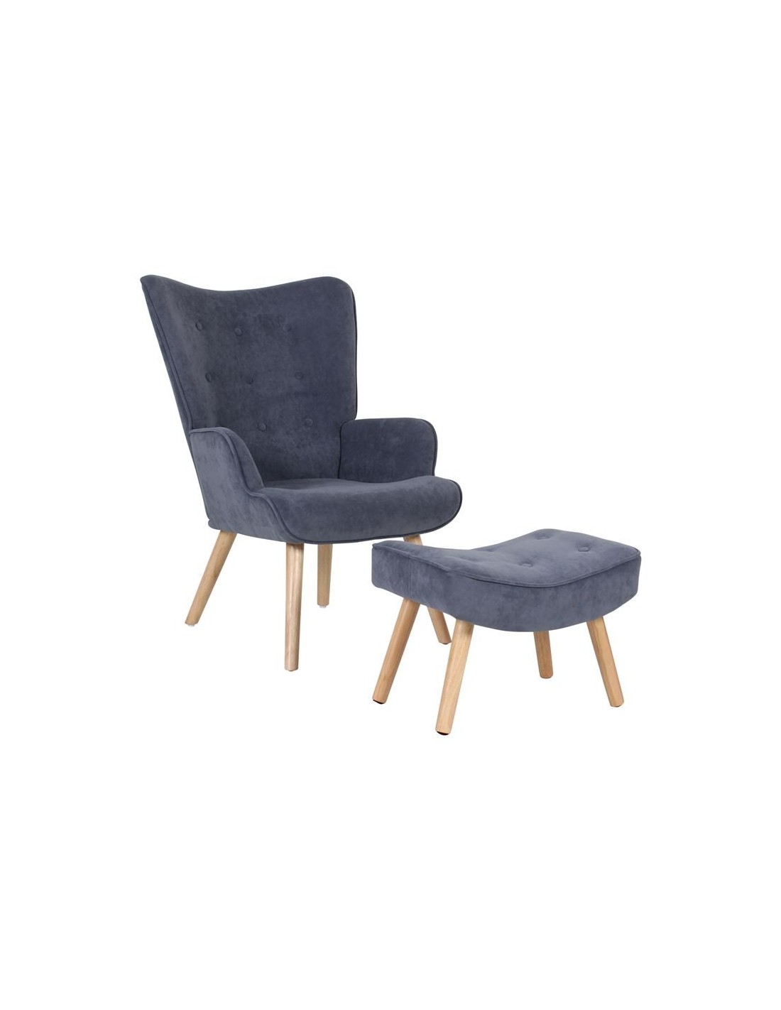 ALMA Set Armchair & Stool Natural - Velure Light Blue (K-D)