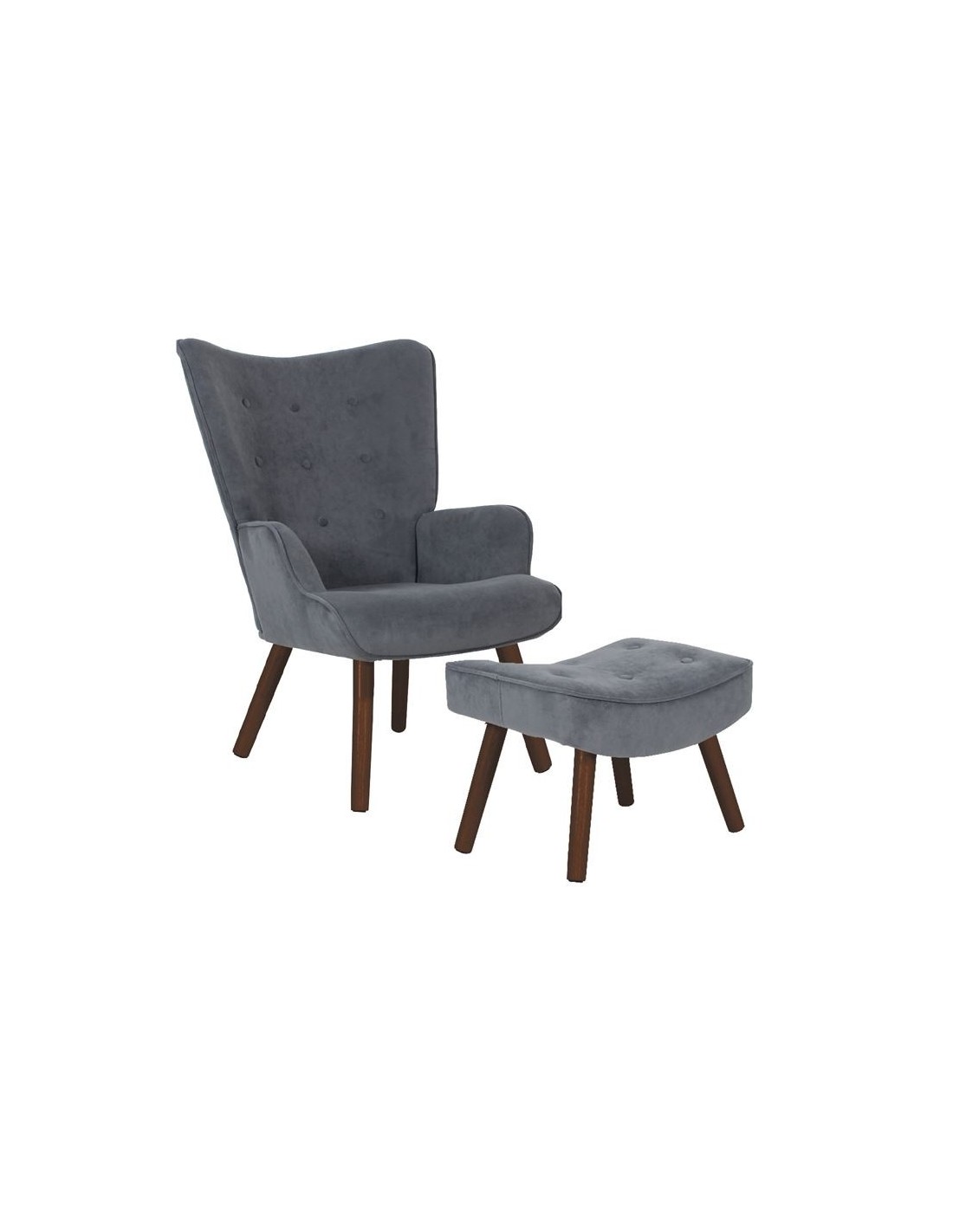 ALMA Set Armchair & Stool Walnut - Velure Grey (K-D)