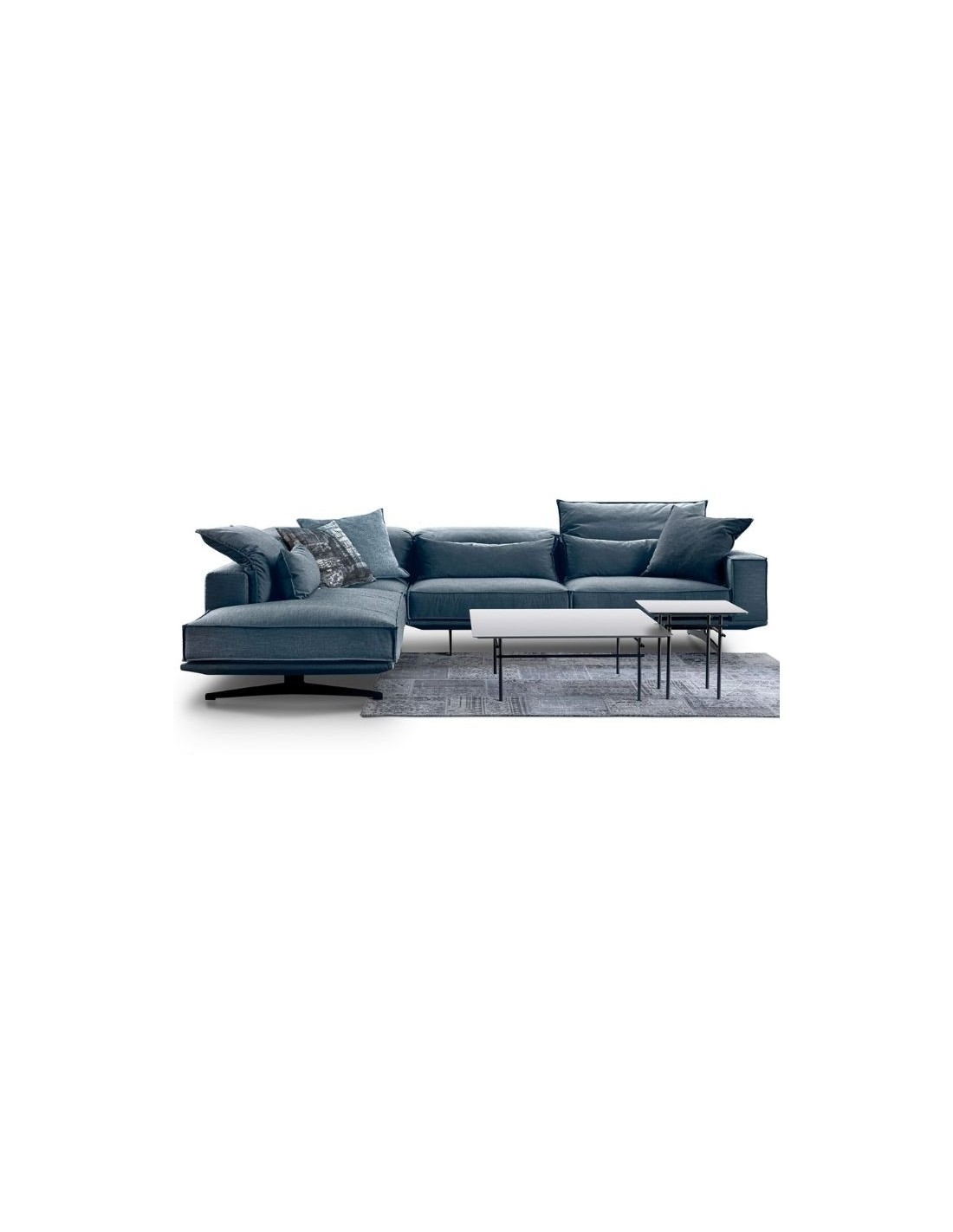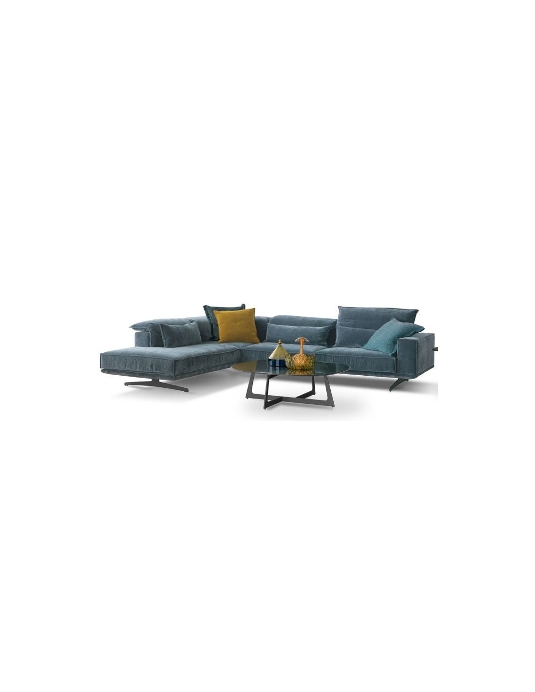 Sofa mounted on a unique metal base and featuring a dynamic mechanism which allowing the backrest cushions to be adjusted in different positions.