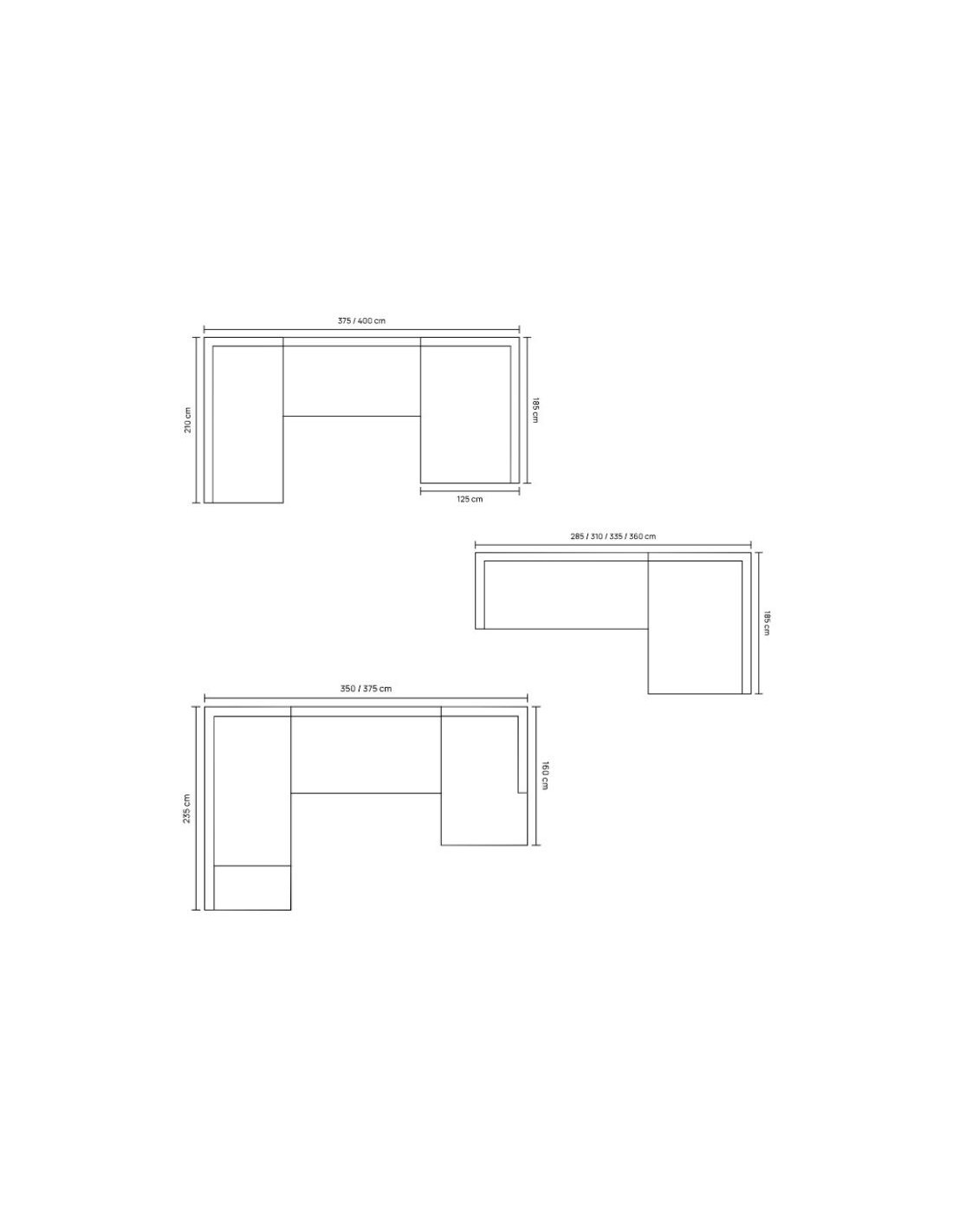 Available Dimensions: 220 x 100 cm | 245 x 100 cm | 260 x 160 cm | 285 x 160 cm | 310 x 160 cm | 335 x 160 cm | 260 x 185 cm | 285 x 185 cm | 310 x 185 cm | 335 x 185 cm| 260 x 235 cm | 285 x 235 cm | 310 x 235 cm | 335 x 235 cm | 260 x 210 cm | 285 x 210 cm | 310 x 210 cm | 335 x 210 cm | 235 x 350 x 160 cm | 235 x 375 x 160 cm | 210 x 375 x 185 cm | 210 x 400 x 185 cm