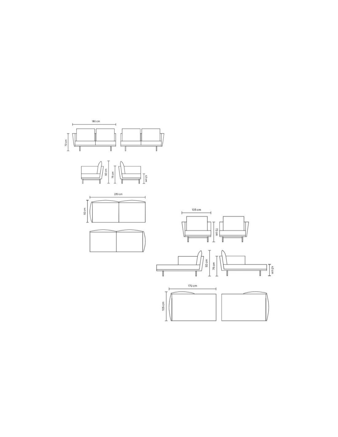 It consists of two arms sofas or modular units in various sizes for different combinations.