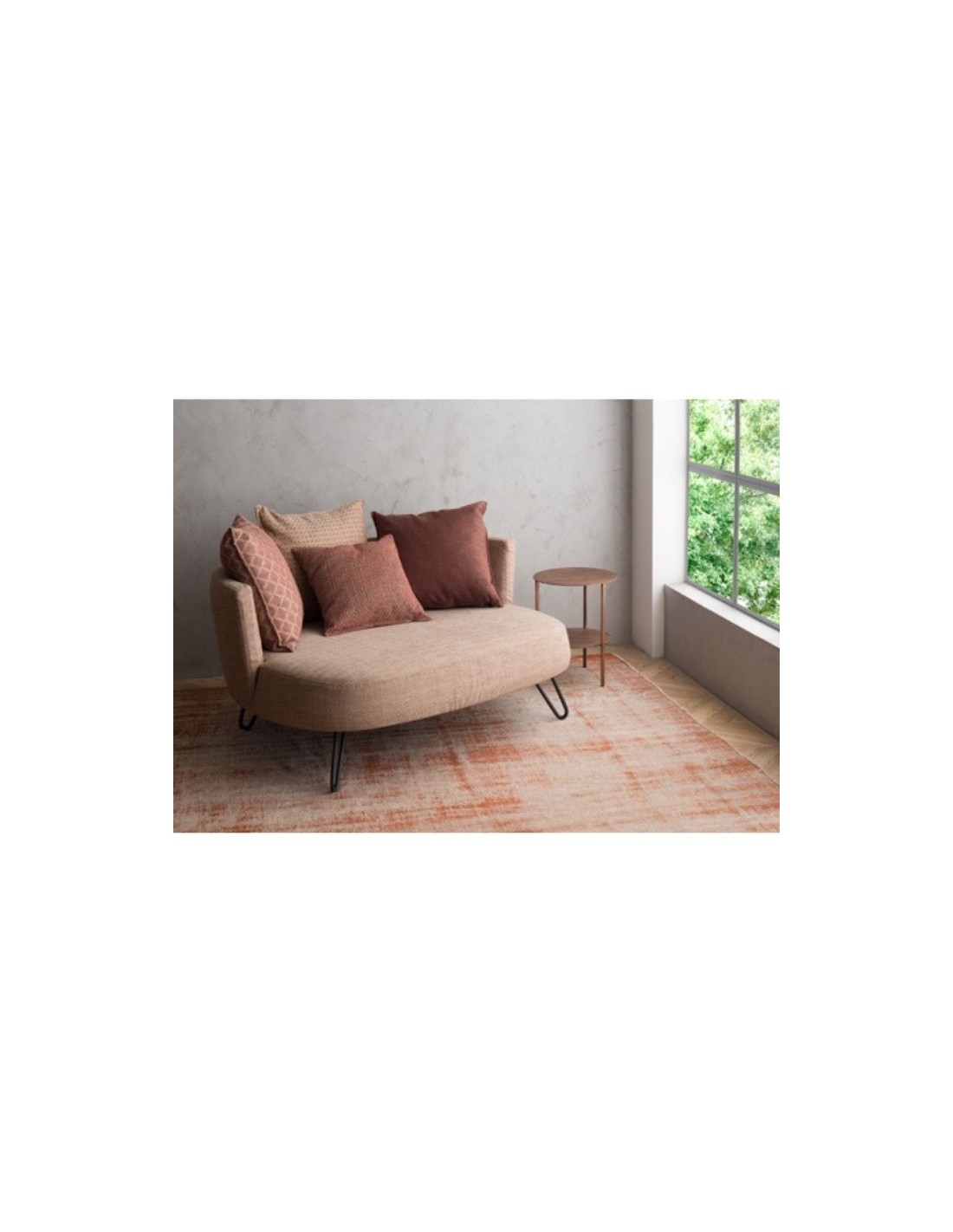 Round chaise with metal base. Removable fabric coverings for easy cleaning or renewal, are available in a variety of textiles and colors.