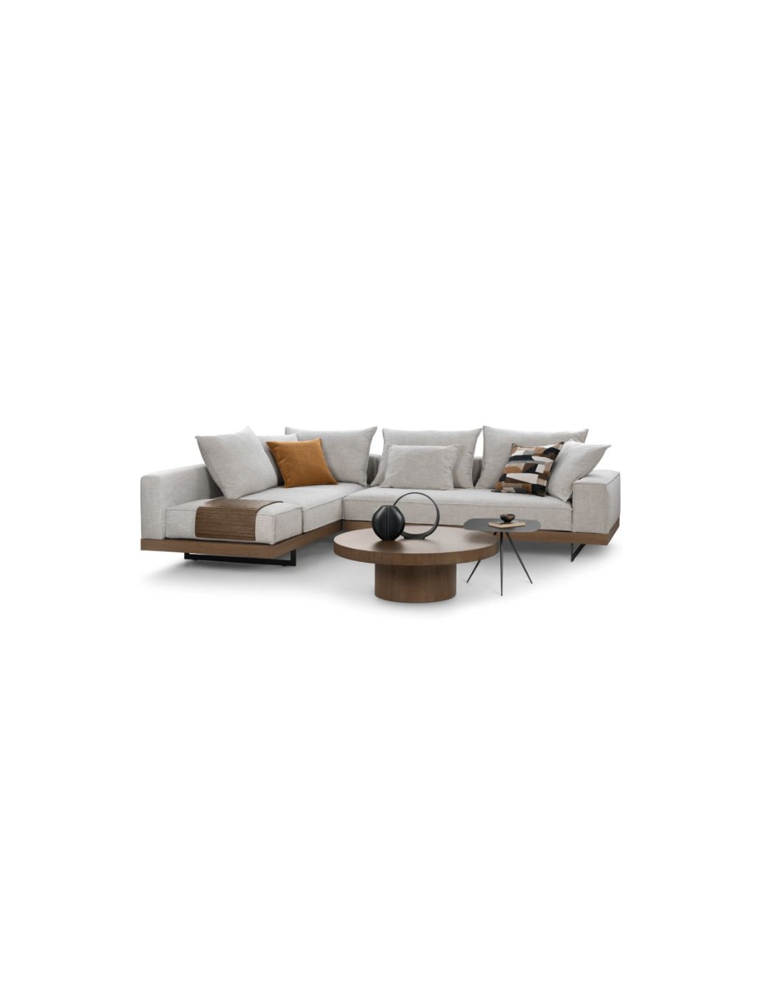 A corner sofa unit that reflects the style of another era, in a modern way.