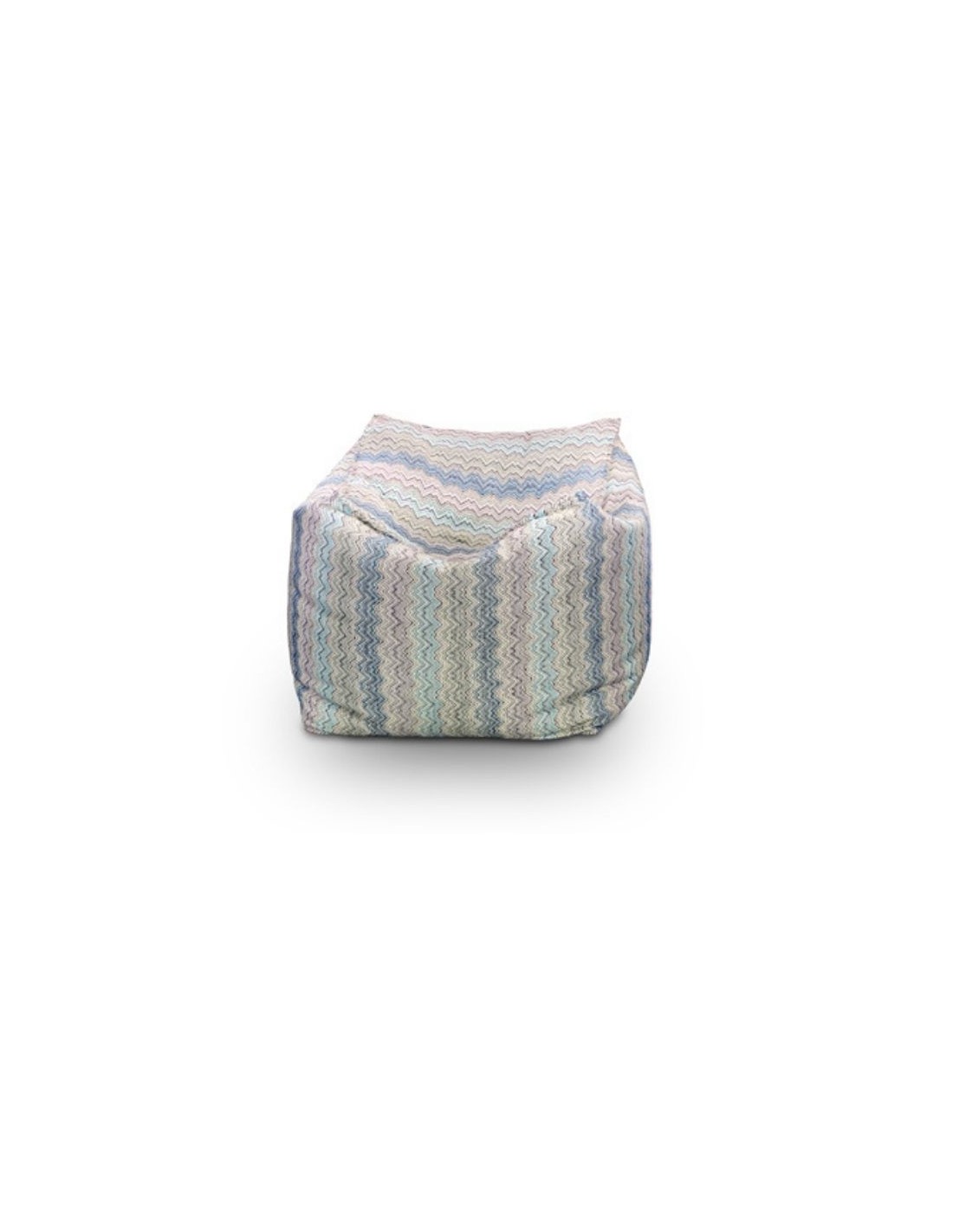 Pouf with fabric coverings, fully removable for easy cleaning or renewal.