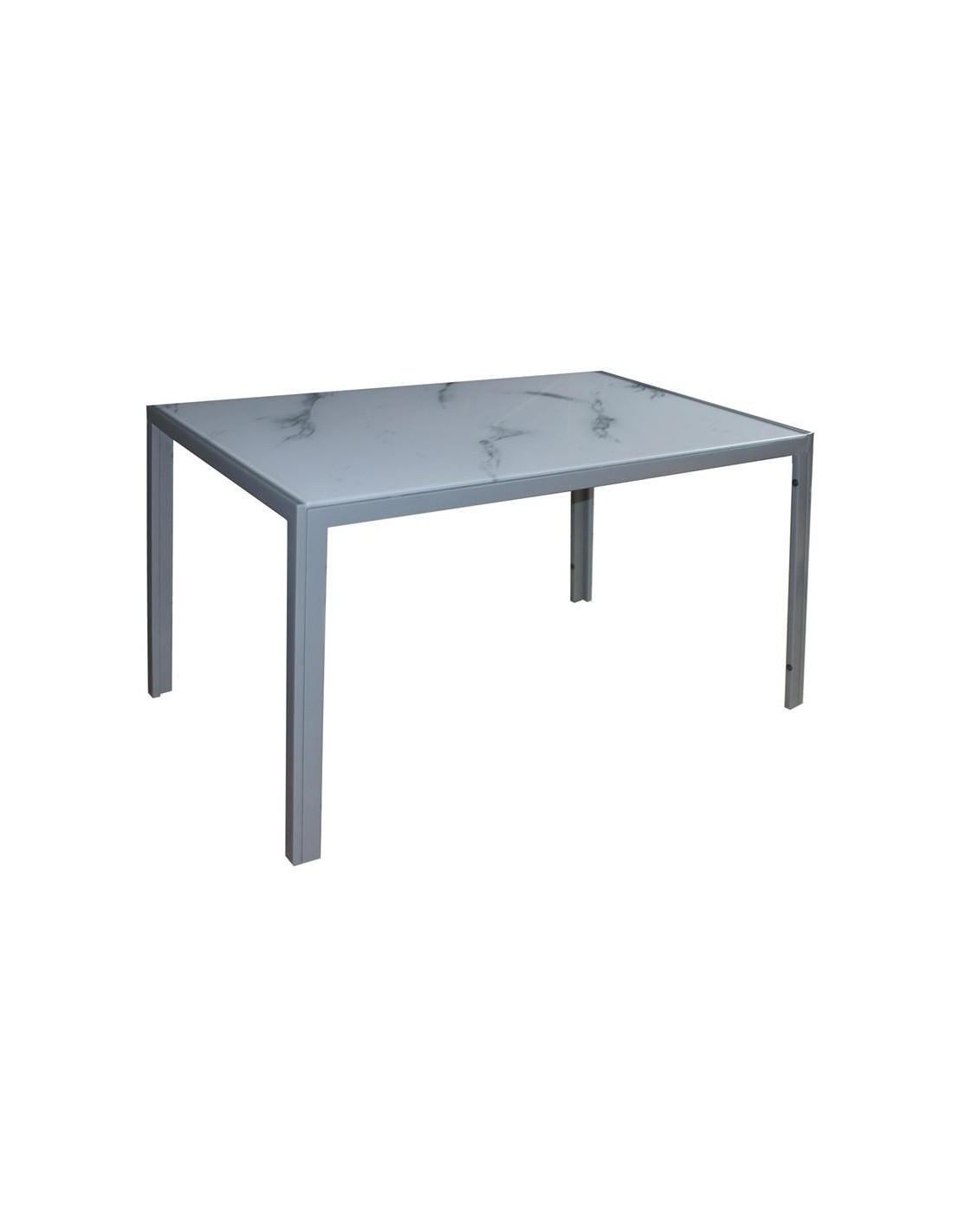 DEGO Table 140x80cm Metal Grey Paint-Glass White Marble