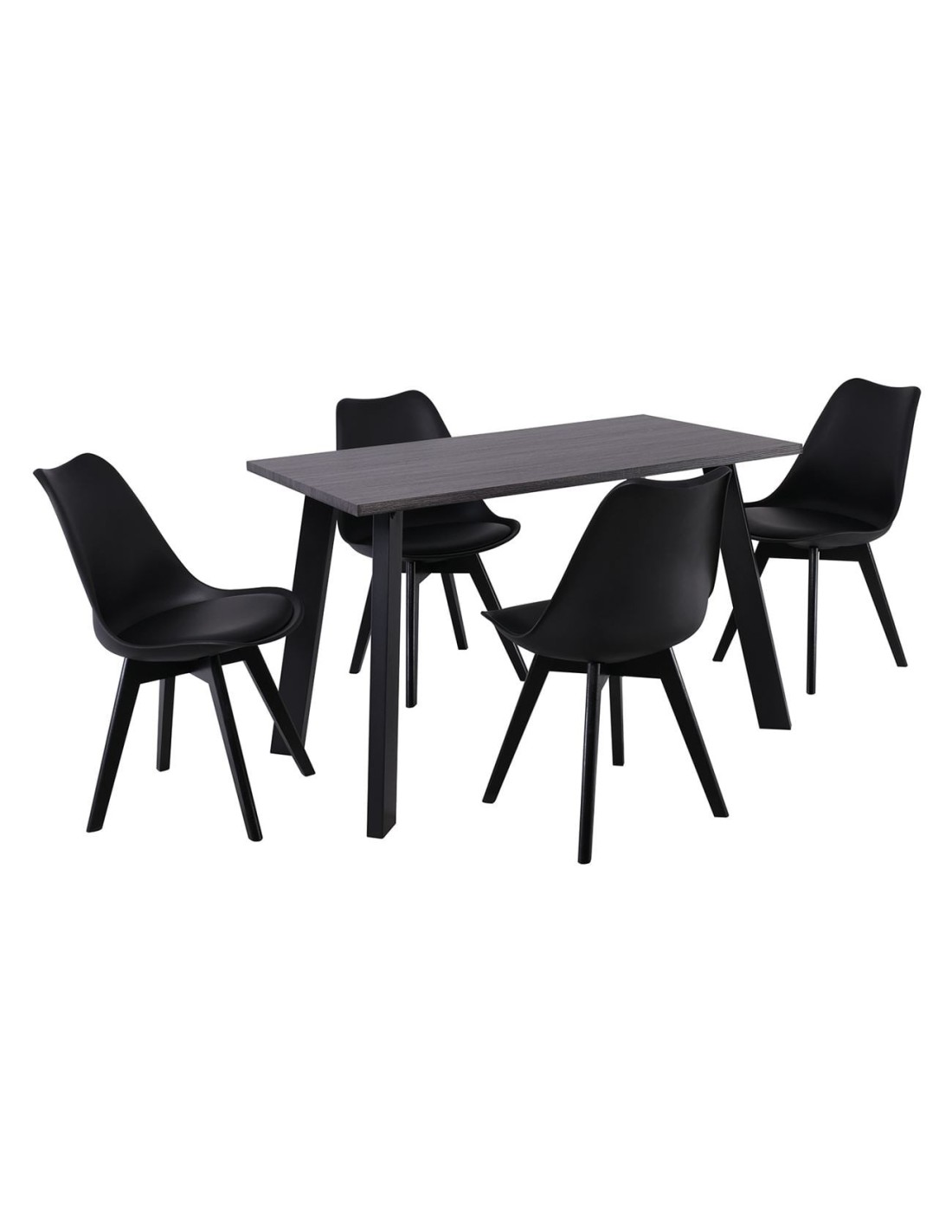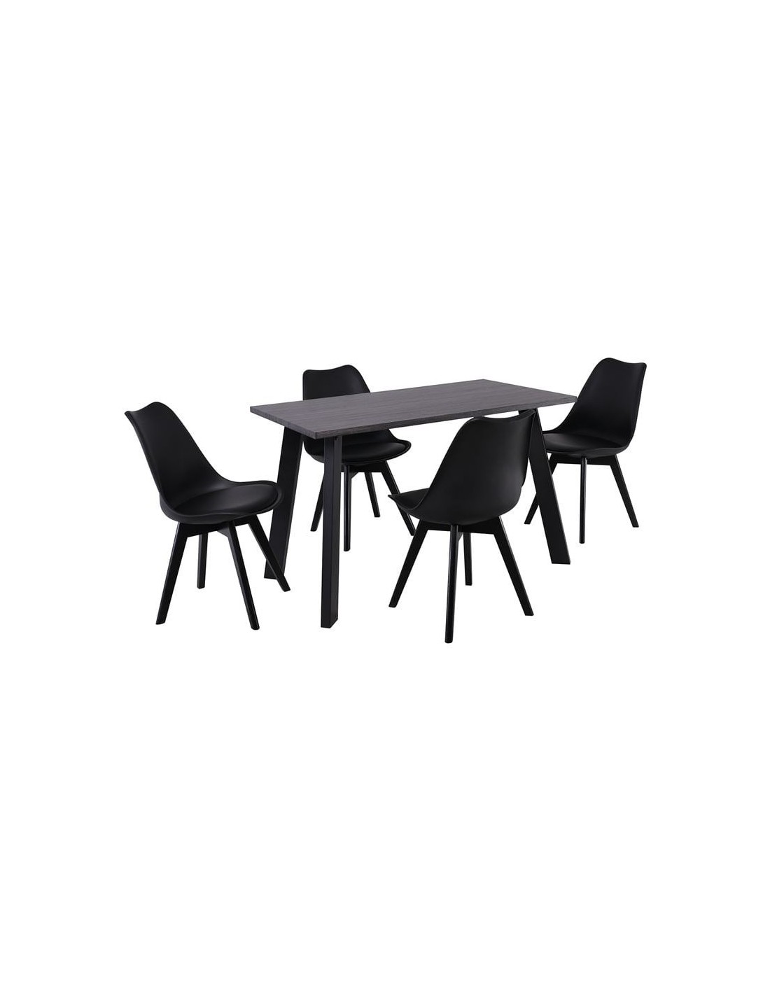MARTIN Set (Table 120x70+4 Chairs) MDF Grey Walnut-Black PP