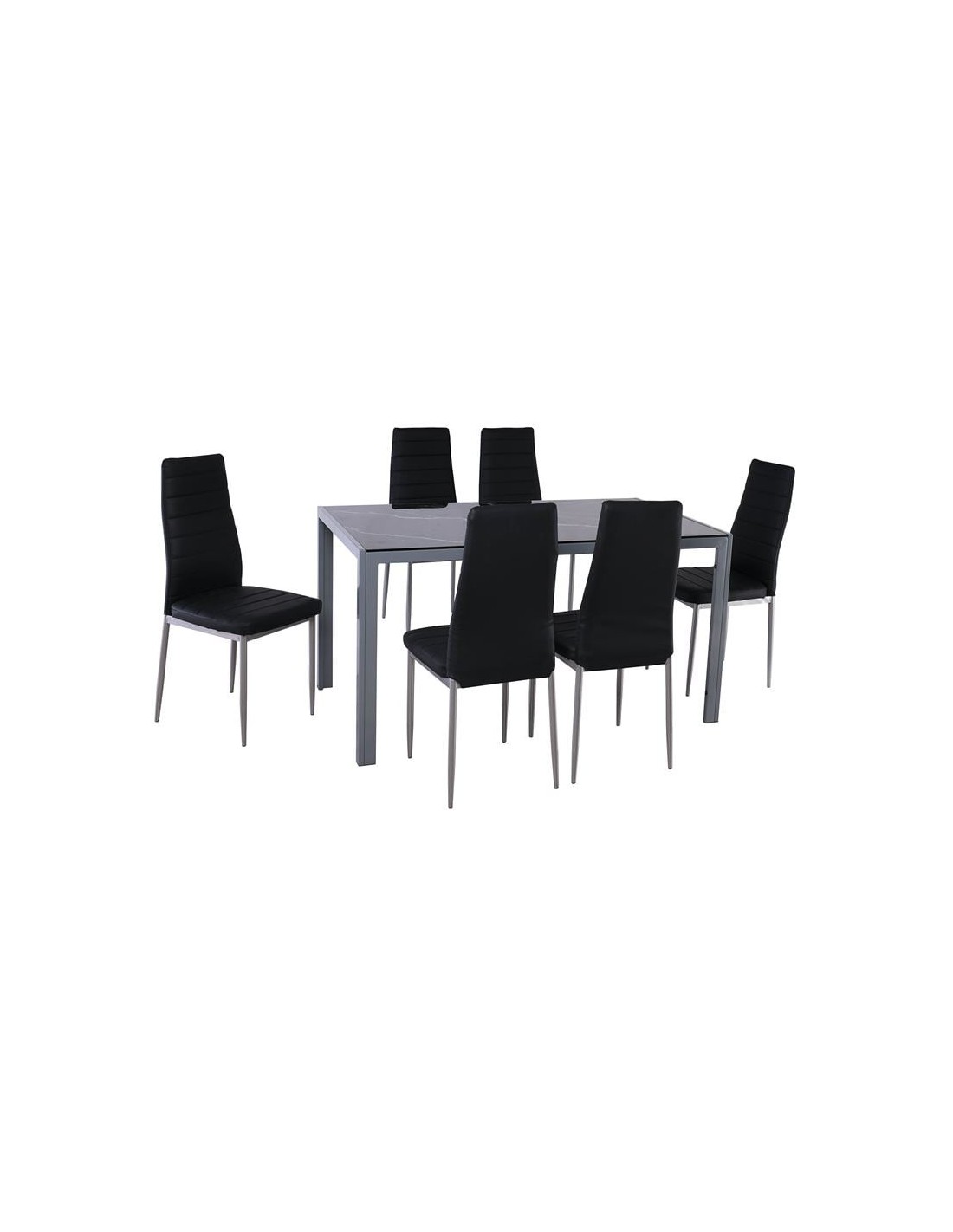 JETTA-DEGO Set (Table 140x80+6 Chair) Metal Grey-Glass Black Marble-PVC Black