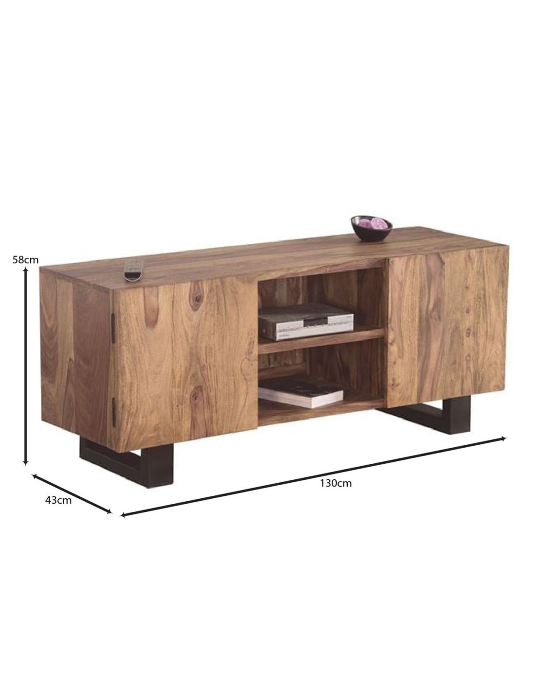 NELSON TV Board 130x43x58 Acacia Natural Finish (Black Paint)