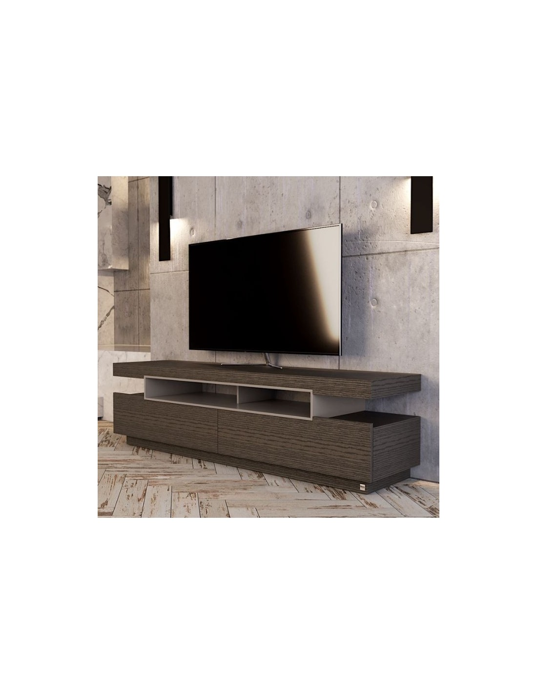 A compact furniture with simple lines and smart storage space with two cabinets and two openings in the center.
