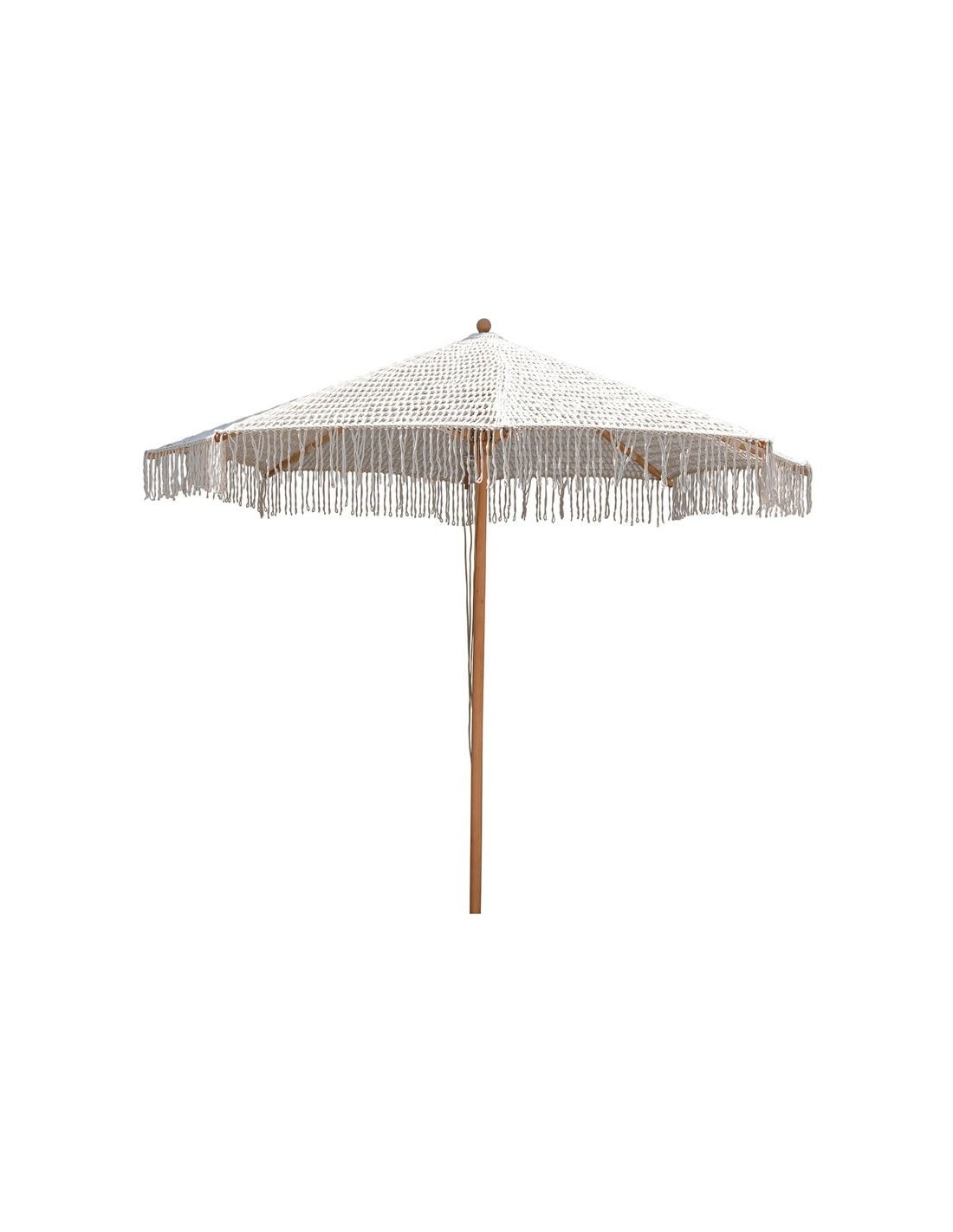 Wooden Beech UMBRELLA 300x300cm, Macrame Knitted Beige