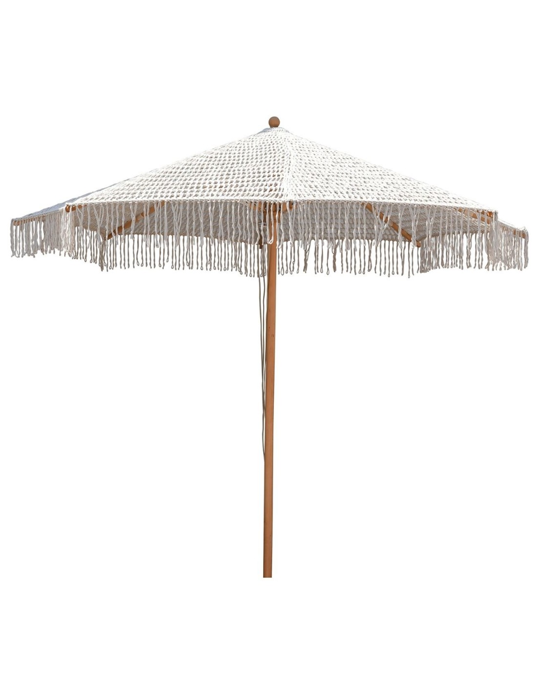Wooden Beech UMBRELLA D200cm, Macrame Knitted Beige