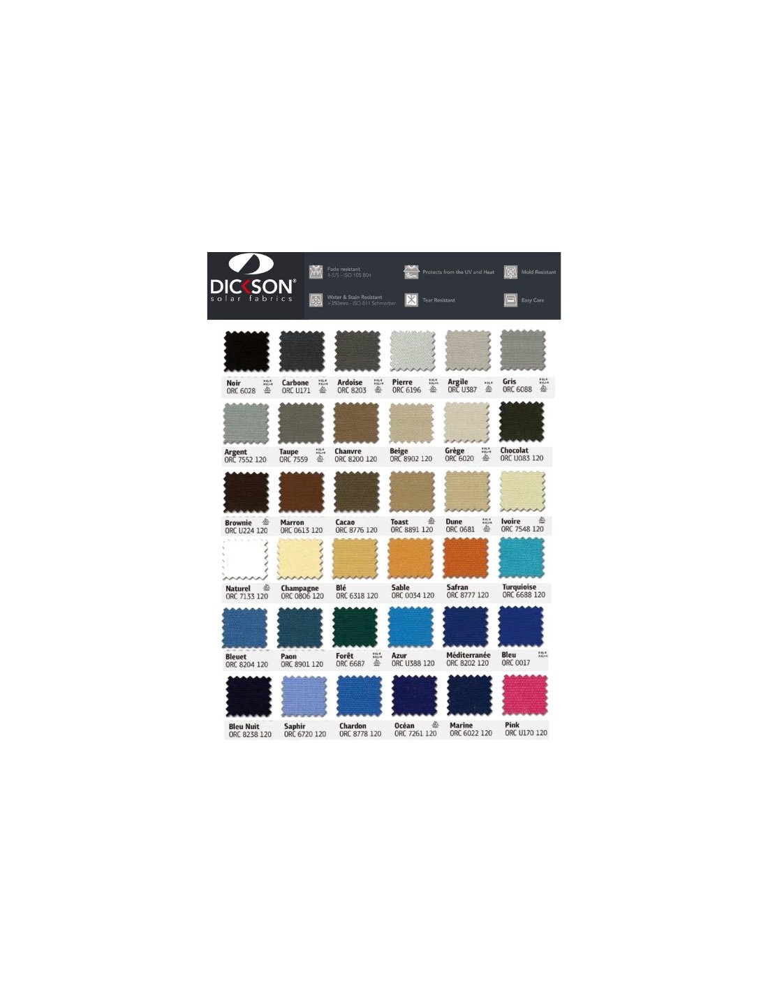 - Fabric polyester DAS & acrylic DICKSON