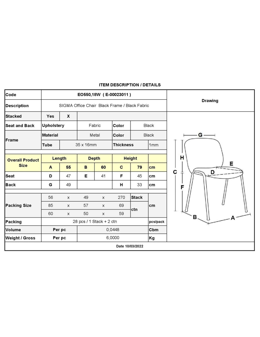 SIGMA Stacking Chair Black Frame-Black Fabric